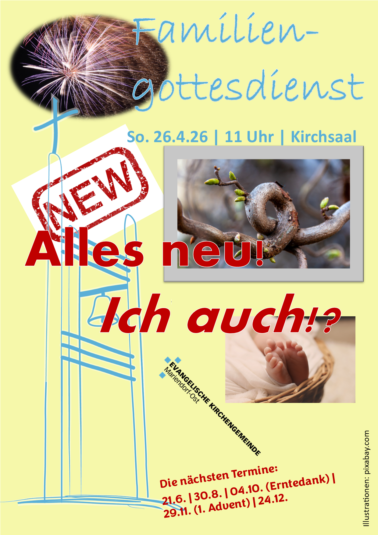 Alles neu! Familiengottesdienst zu Jubilate! Vieles soll nicht so sein, wie es ist. Trotzdem bleibt es oft so. Muss nicht sein. Gott schafft immer wieder Neuanfänge, auch in uns. Am Sonntag können wir mal mitmachen.